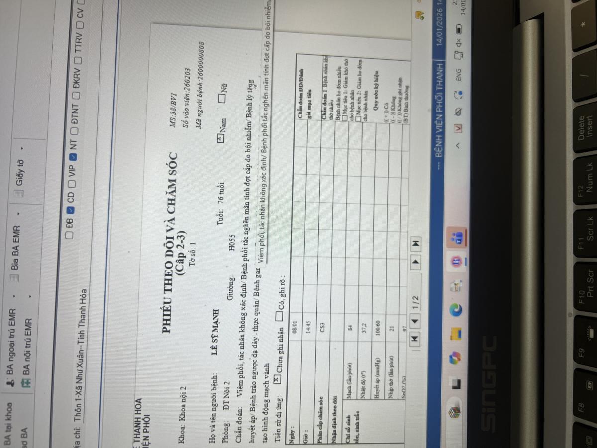 [Mã KCB: 808] Khi ktra để xuất file PDF phiếu chăm sóc không theo ngày với nhau, mà cách tờ, ngày mùng 8/1 1 tờ, các ngày khác lại sang 1 tờ khác