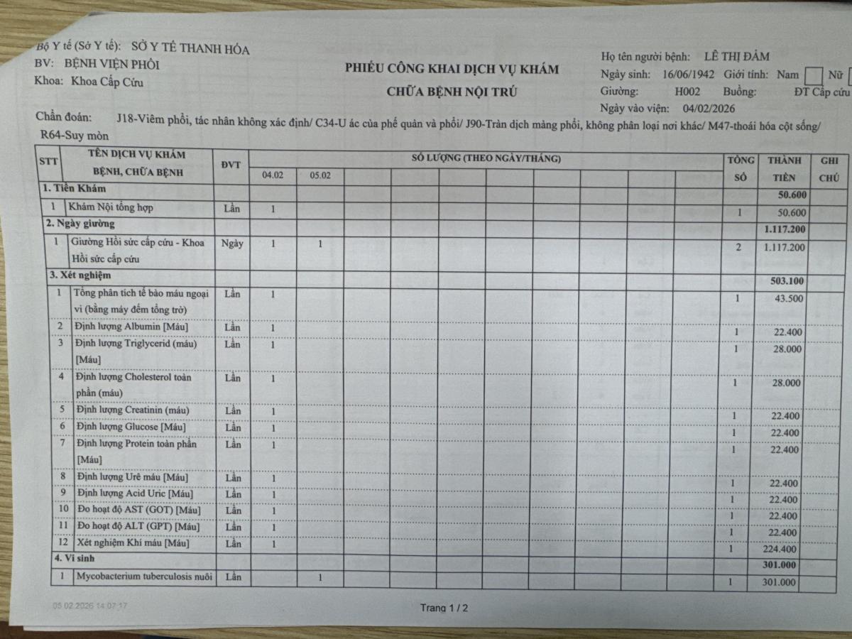 Trên phơi công khai để mẫu 50 để thanh toán thì thể hiện các dịch vụ đã làm ở phòng khám